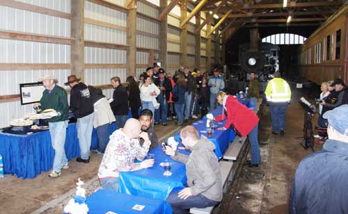 По приезду в собственно музей, в ангаре гостей ждали накрытые столы, еда, и опять-таки пиво, которое можно было выпить в историческом вагоне-ресторане.