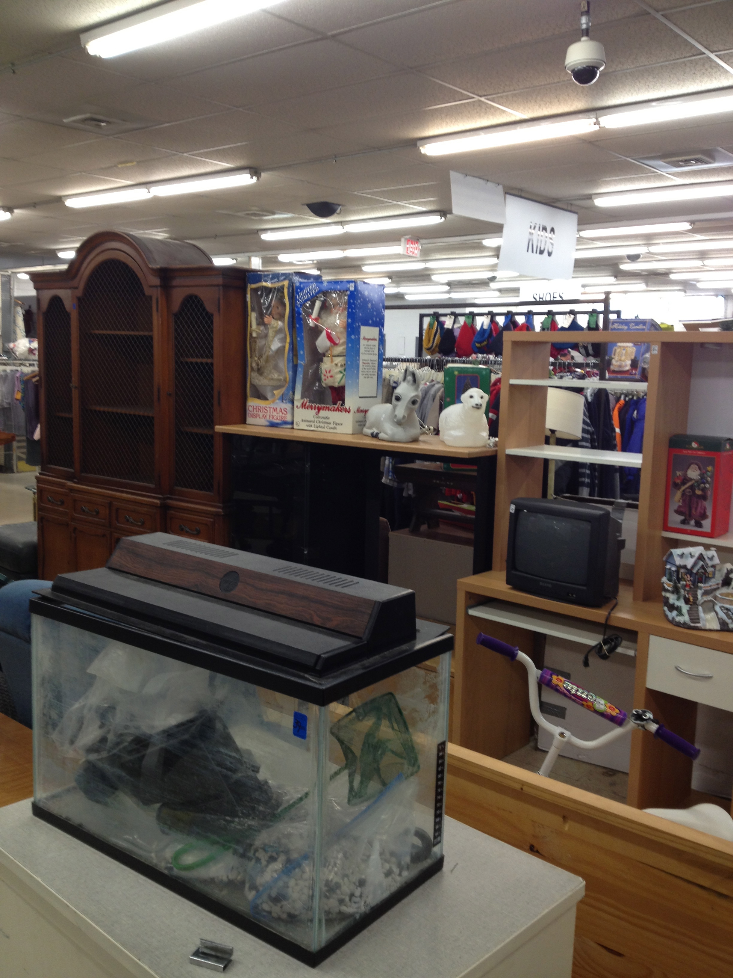 Горожане несут сюда все, что им больше не нужно. Я даже не знаю, чего здесь больше – одежды или всяких сувенирных вещичек. Возможно, их подарили кому-то на прошлое Рождество или двадцать лет назад. Теперь эти вещички кто-то купит и снова подарит. Такой вот круговорот. Покупатели действительно выбирают здесь подарки к празднику.