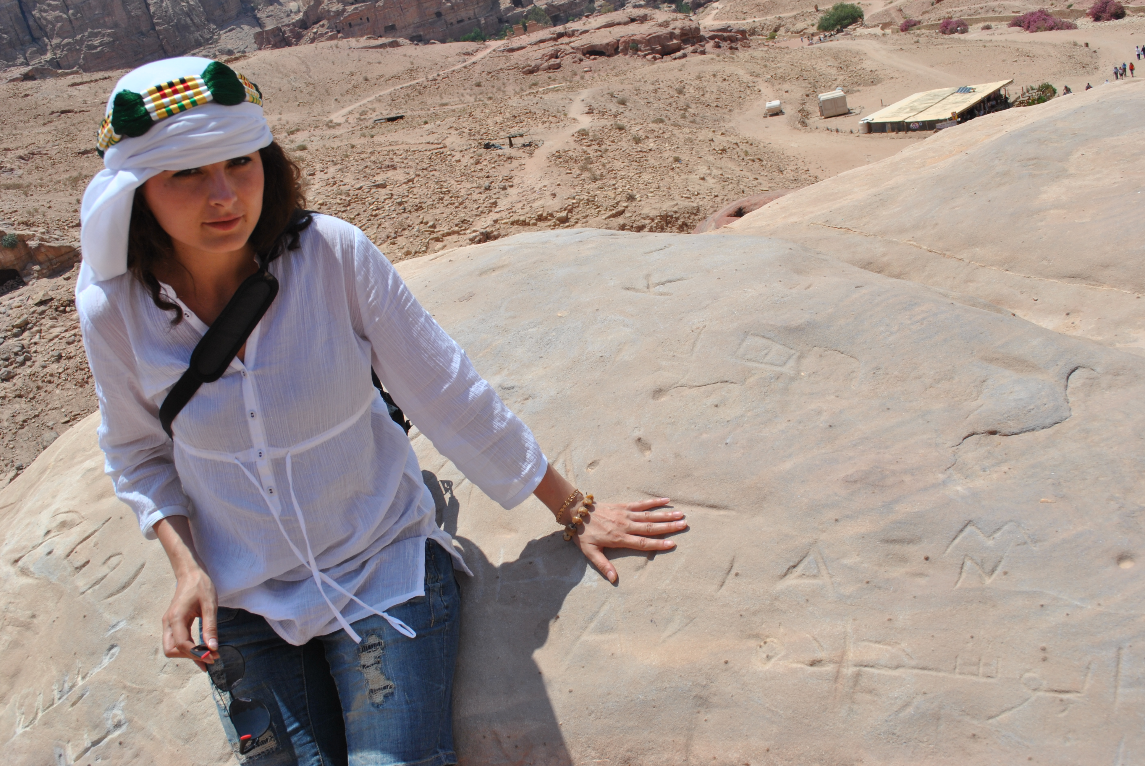 Через пару км я поняла, что меня преследует маленькая бедуинская девочка лет 8. Куда бы я не шла, она следовала за мной как хвостик. Сначала она предложила купить у нее открытки с видом Петры, а потом просто молча ела меня глазами. Я на скалы, она за мной. Я в пещеры- она рядом. Наконец я не выдержала и спросила по английски, дескать, милое дитя , что тебе нужно? В голове при этом промелькнули разные мысли, в том числе- уж не удочерить и забрать ее в Москву она сейчас попросит? Но девочка просто сказала, что никогда не видала такой, как я. Что я ей понравилась. И подарила мне деревянные бусы, после чего исчезла будто с чувством выполненного долга. Я растрогалась. Милые бедуинские детишки!