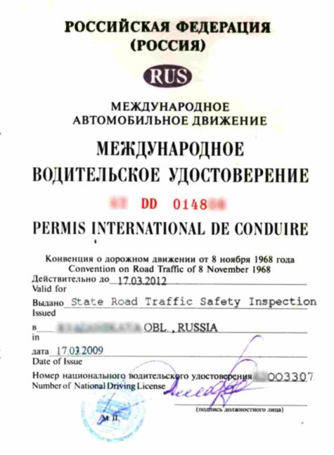 Международное водительсвое удостоверение: