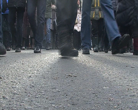 Это Антон Литвин, представивший в 2012 году видео "Шествие", сделанное по теме протестных акций прошедшего года. Бесконечный ряд идущих ног с рефреном "Мы еще придем!". Очень концептуально и актуально.