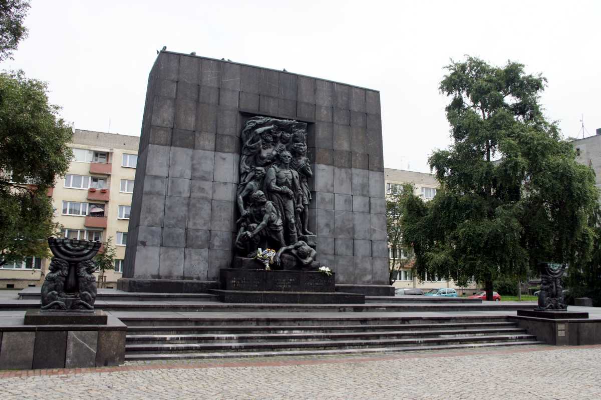 Вообще, во время немецкой оккупации, в Варшаве произошло два больших восстания. Первое из них, восстание в варшавском еврейском гетто, началось 19 апреля 1943 года, в тот день, на который была намечена его полная и окончательная ликвидация. Оставшихся обитателей планировали отправить в лагеря смерти. Именно об этих событиях рассказывает всемирно известные фильмы «Список Шиндлера» Стивена Спилберга, и «Пианист» Романа Полански. Планировка современной Варшавы очень сильно отличается от довоенной, но, приблизительно, зона варшавского гетто сегодня располагается между аллеей Иоанна Павла II и улицами Маршалковской / генерала Владислава Андерса в направлении с запада на восток, и между улицей Зигмунда Сломинского и Иерусалимской аллеей в направлении север-юг. Через 27 дней восстание было подавлено, практически все руководители погибли, а оставшиеся в живых обитатели гетто в большинстве своем были отправлены в Треблинку.
