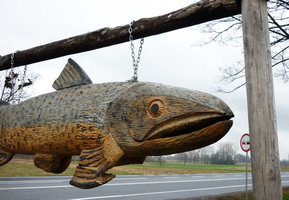 Вот уже который год, приезжая в Польшу на машине, я обязательно направляюсь со всеми своими пассажирами на ужин в одно замечательное заведение, которое называется Karczma «W ZAGRODZIE», что переводится примерно как «Корчма во дворе». Оно удобно расположено прямо на дороге Брест-Варшава примерно в 20 километрах от границы, в населенном пункте Horbów Kolonia. Указателем для съезда вам послужит вот такая замечательная рыбина: