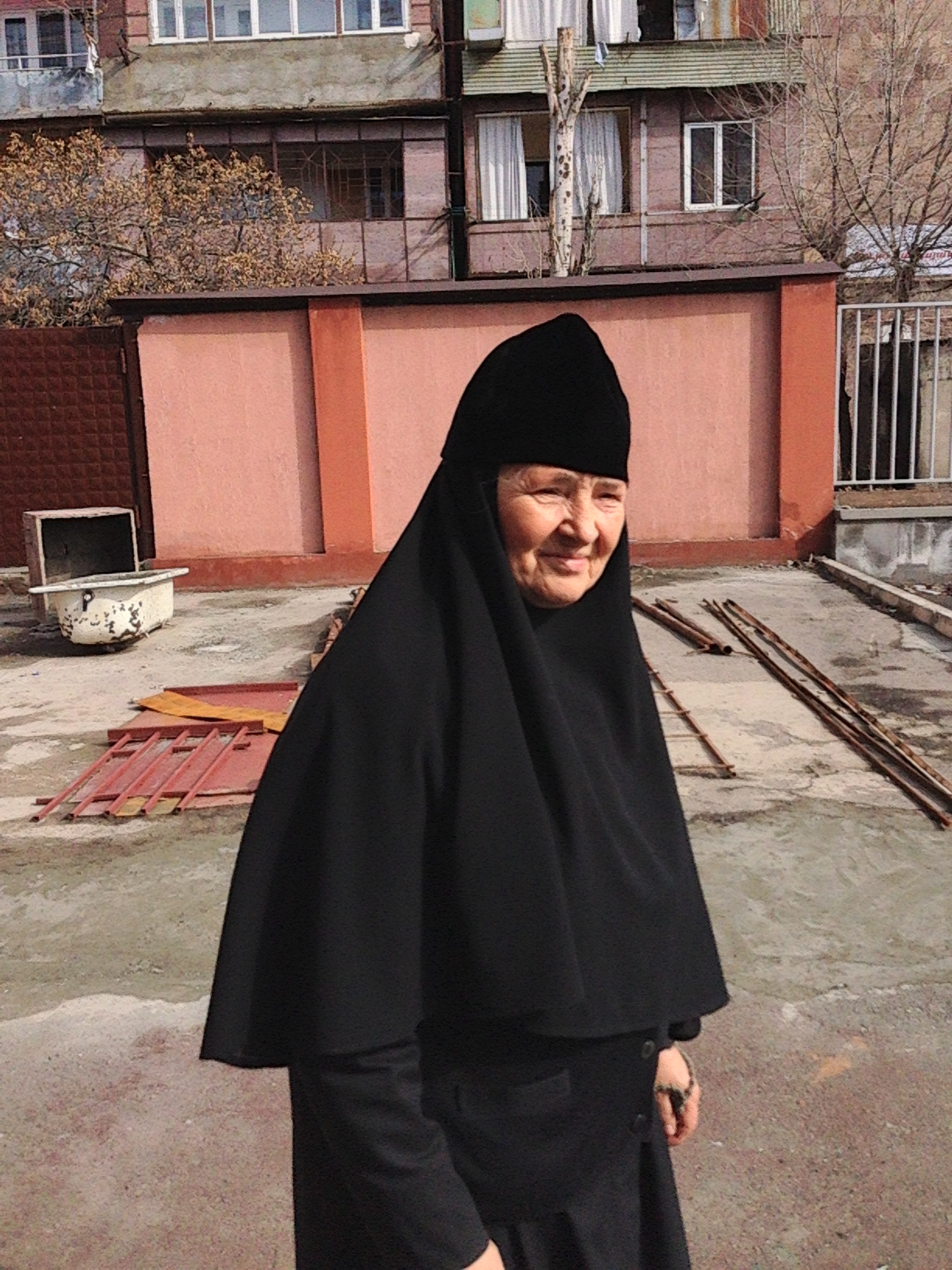 Уже на выходе, провожая нас, она взяла меня под руку и тихо сказала: «Как же здорово, что вы приехали, что не забываете. Храм этот в 90-м году открыли, до того здесь Дом Культуры был и клуб. Кино тут показывали. Я в 1993-м пришла сюда и казначеем стала работать. Муж мой шесть лет как умер, и три года я монахиня. Я и не думала, что постриг приму, без мужа невыносимо стало, уйти отсюда хотела, а батюшка сказал: «Не, дури, это дом твой», и я осталась. Храни вас Господь,- она перекрестила нас и еще долго стояла у ворот, глядя нам вслед, маленькая добрая старушка - Алла Васильевна Безроднова. Инокиня Алипия из солнечного Еревана.