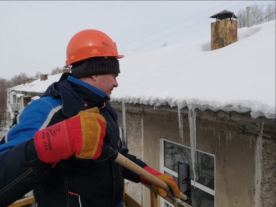 18.03.2021, 09:18 2351 На фоне усиления уборки снега в Омске в центре города на краю крыши висит сугроб