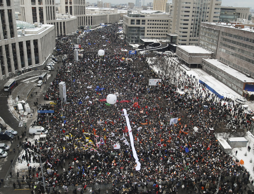 На митинг на проспекте Сахарова, по данным ГУМВД Москвы, собралось около 30 тысяч человек. Митингующие выслушали политиков и обществнных деятелей, а также приняли новую совместную резолюцию. Завершил предновогодний митинг, как и положего, Дед Мороз.
