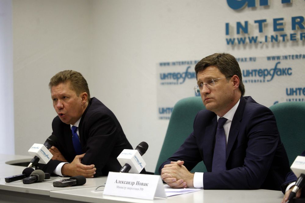 Алексей Миллер и Александр Новак во время пресс-конференции, посвященной российско-украинскому газовому конфликту.