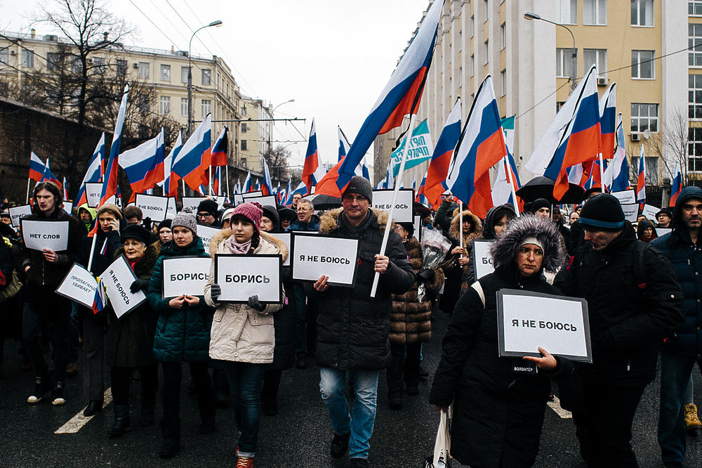 Как проходила панихида по Борису Немцову: цветы, лозунги и флаги