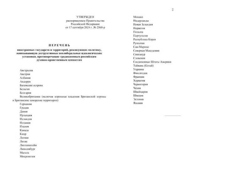 20.09.2024, 22:24 17832 Российское правительство утвердило перечень стран, чьи ценности противоречат российским