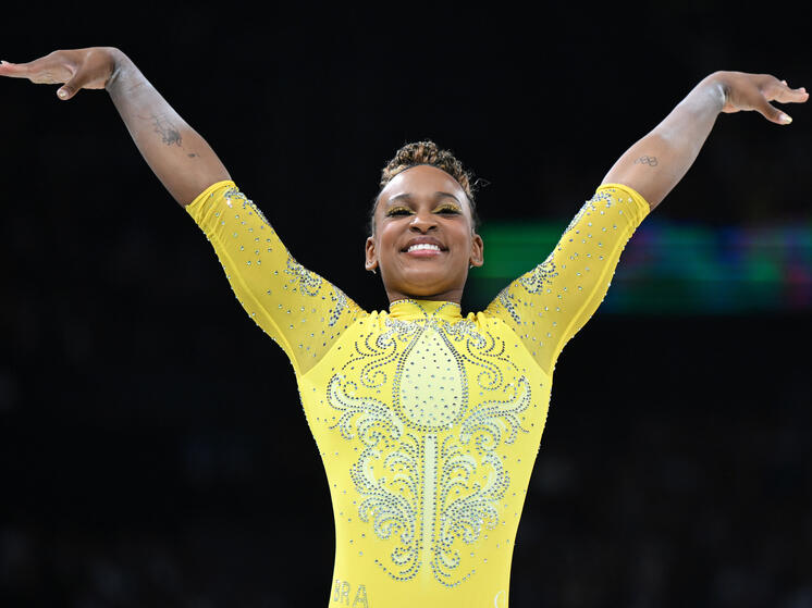 05.08.2024, 18:45 3226 Американки склонились перед бразильской гимнасткой: фото выступлений Ребеки Андраде