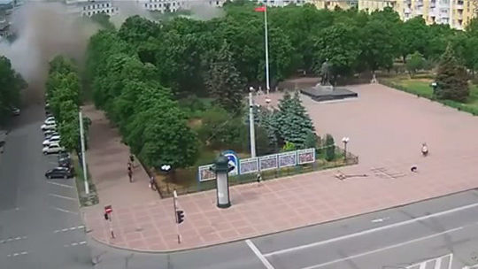 По зданию областной администрации Луганска был нанесен авиаудар самолетами Украинских вооруженных сил. Есть раненые, погибли пять человек. Оригинал видео на сайте youtube.com, опубликовано пользователем