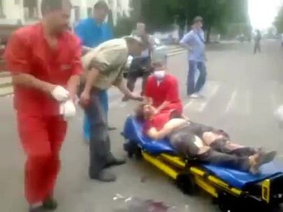 Луганск, 2 июня. ВВС Украины "нанесли авиаудар по зданию обладминистрации Луганска". Видео очевидца, снято на мобильный телефон, сразу после бомбежки. Рядом со зданием обнаружены неразорвавшиеся бомбы. Полностью опубликовано на портале youtube.com пользователем Alex Kuzmin.