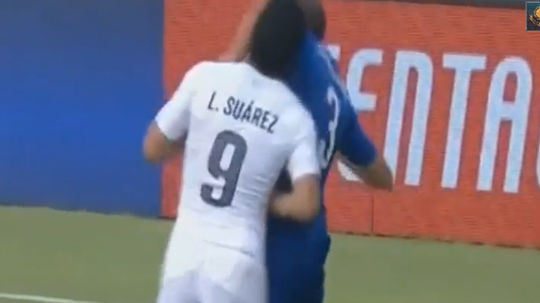 Форвард сборной Уругвая Луис Суарес вновь отличился некорректным поведением на поле во время футбольного матча. Лучший игрок чемпионата Англии — 2013/2014 в составе "Ливерпуля" в решающей игре группового раунда ЧМ-2014 против сборной Италии в борьбе с Джорджо Кьеллини не сдержался и попытался ухватить зубами плечо итальянца. Арбитр вынужден был остановить встречу, так как оба футболиста повалились на землю в штрафной, однако серьезных наказаний предъявлять оппонентам не стал. Ранее жертвой Суареса на клубном уровне стал защитник "Челси" Бранислав Иванович. Оригинал видео на сайтеyoutube.com, опубликовано Футбольные Обзоры ║ HD.