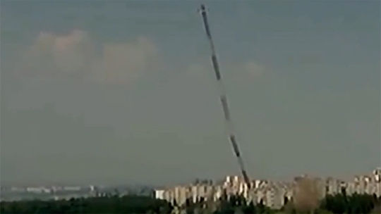 Телевышка в городе Славянск Донецкой области, в течение нескольких месяцев находившаяся в эпицентре боев, все же не выдержала постоянных обстрелов и в ночь на вторник рухнула.