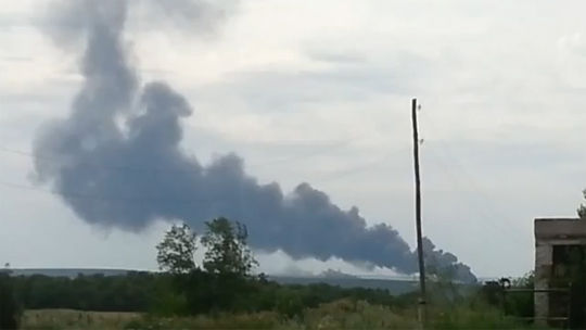 Очевидцы сняли на видео, как горит сбитый малазийский самолет "Боинг 777".