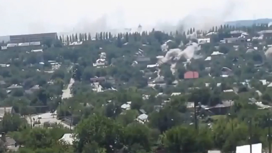 Очевидец снял на видео артиллерийский обстрел Горловки. Город весь в дыму.