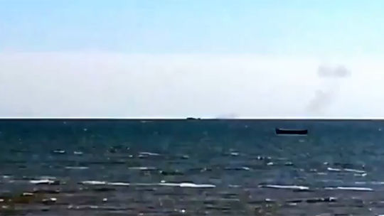 Ополченцы подбили украинский патрульный катер в Азовском море при атаке на Широкино. В то же время, портал "Украинская правда" сообщает, что неизвестными были обстреляны два катера береговой охраны. Оригинал видео на сайте youtube.com, опубликовано пользователем Новороссия вперед.