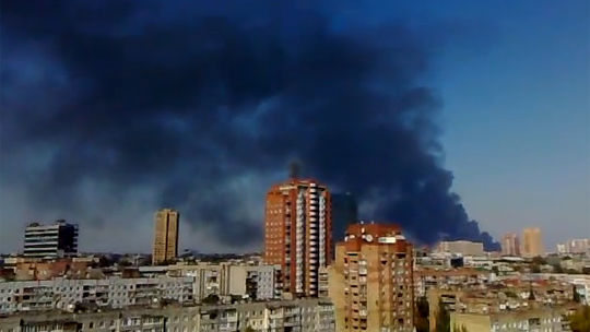 Возле донецкого аэропорта продолжаются столкновения. Аэропорт горит. Оригинал видео на сайте youotube.com, опубликовано пользователем Vasya793.