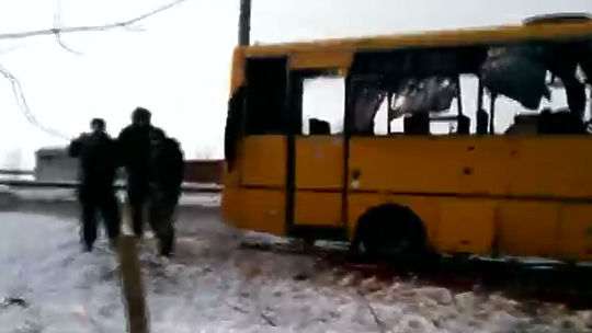 13 января в Донбассе снаряд попал в автобус с мирными жителями, в результате чего погибли не менее 10 человек и еще 18 получили ранения. Украинские власти уверяют, что вина за трагедию лежит на ополченцах. В ДНР в свою очередь заявили, что факт обстрела подтвердить не могут - во всяком случае, стреляли точно не из "Града", как сообщили по другую сторону баррикад. Последствия попадания автобуса под обстрел - ужасающие, потому мы размещаем видео с купюрами. Оригинальное видео опубликовано на сайте youtube.com пользователем Сегодня.ua