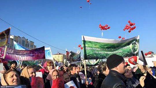 Митинг в Грозном против антиисламских карикатур начался в 10 утра.Напротив мечети были развешаны плакаты «Мы любим пророка Мухаммеда». Колонны с четырёх сторон прошли к мечети «Сердце Чечни». На митинге с речью выступил глава Чечни Рамзан Кадыров. После шествия был совершён намаз.