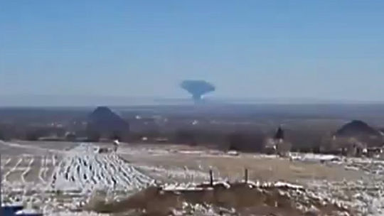 В районе Дебальцево в небе появился огромный гриб черного дыма