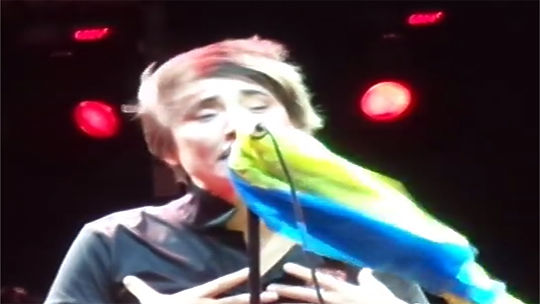 На концерте в Тбилиси популярная певица Земфира взяла из рук фаната украинский флаг. Никаких политических лозунгов за этим не последовало, однако этого хватило, чтобы стать на несколько дней главным объектом обсуждения в Интернете. Видео: youtube.com/keto khomeriki.