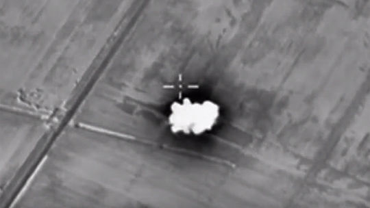 На видео - нанесение ударов Воздушно-космическими силами России по опорному пункту террористов ИГИЛ (запрещено в РФ) в провинции Сирии Алеппо. Видео опубликовано на сайте youtube.com пользователем Минобороны России.