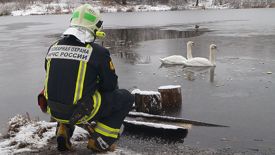 Московские спасатели освободили из ледяного плена двух лебедей. Обессилевшие от мороза птицы застряли в покрывающемся льдом озере. У самца было изранено крыло и повреждена лапа, поэтому пара не могла улететь из злосчастного водоема. Как известно, лебеди моногамны и не бросают друг друга. Подробности освободительной операции смотрите на видео.