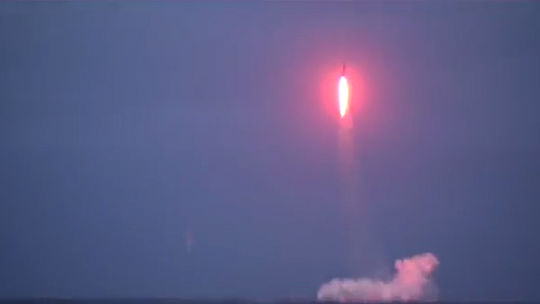 Минобороны России опубликовало видео, на котором запечатлен запуск МБР "Синева" с подводной лодки "Верхотурье". Пуск производился из акватории Баренцева моря по полигону Кура на Камчатке.