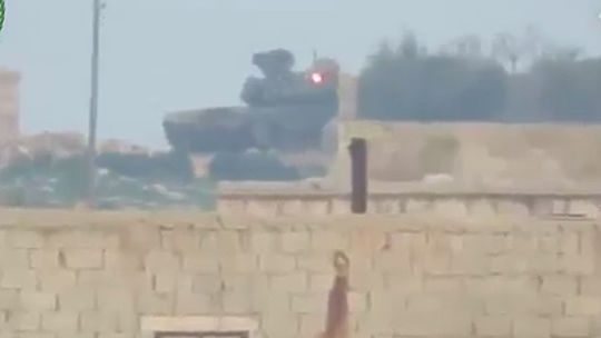 Боевики "Свободной сирийской армии" не смогли уничтожить танк Т-90, принадлежащий правительственным силам, с помощью американской противотанковой ракеты. После попадания ракеты в боевую машину видно, как из танка выбирается абсолютно невредимый танкист. Сам Т-90 также выглядит совершенно целым.