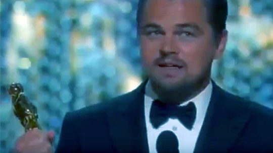 Леонардо Ди Каприо получил награду американской киноакадемии - статуэтку "Оскар". При этом актер держал себя в руках и не дал волю эмоциям. Видео опубликовано на сайте youtube.com пользователем metall210.