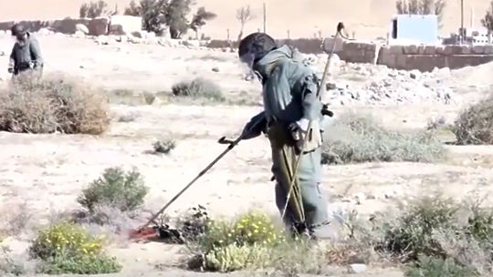 Минобороны обнародовало видео, на котором российские саперы разминируют историческую часть Пальмиры. За сутки специалисты отряда Международного противоминного центра ВС РФ обработали более 20 гектаров. Видео опубликовано на сайте youtube.com пользователем Минобороны России.