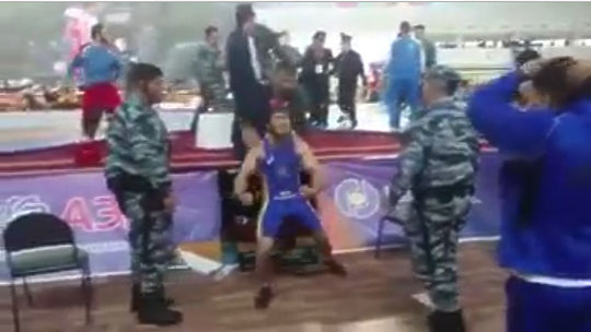 Поединок между двумя борцами Виктором Лебедевым и Исмаилом Мускаевым на Чемпионате России по вольной борьбе закончился дракой, которую пришлось разнимать сотрудникам ОМОНа. Конфликт произошел из-за расхождений в оценке деятельности судей во время поединка. Рефери присудили победу Виктору Лебедеву, что не удовлетворило представителей дагестанской сборной. Сам же борец Исмаил Мускаев не смог сдержать эмоций и, после объявления о своем поражении, начал потасовку. Помощникам пришлось буквально скрутить спортсмена и силой отвести в раздевалку.