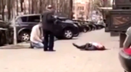 В центре Киева возле гостиницы "Премьер-палац" сегодня был застрелен бывший депутат Госдумы Денис Вороненков. Невольный свидетель заснял место трагедии. Видео опубликовано на сайте youtube.com пользователем News-Front International.