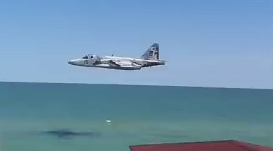 Отдыхающие на пляже в поселке Кирилловка в Запорожье сняли на видео украинский штурмовик Су-25, который пролетел всего в нескольких метрах над морем. По свей видимости боевая машина совершала маневр в рамках учений на Азовском море.