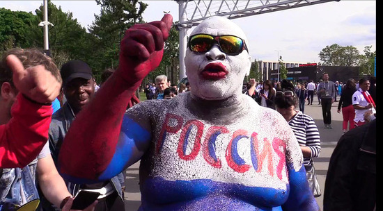 Перед матчем открытия Чемпионата мира по футболу колоритный болельщик из Франции - пухленький "пончик", раскрашенный в цвета российского флага, признался в любви к России и Путину. Эмоциональное поведение фаната привлекло всеобщее внимание, а мы сняли парня на видео.