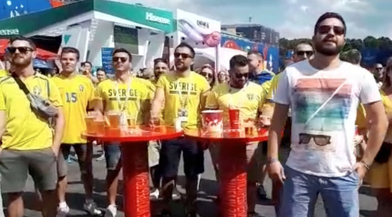 Перед началом матча в рамках чемпионата мира по футболу между сборными Швеции и Южной Кореи, который проходит 18 июня в Нижнем Новгороде, шведские болельщики спели гимн своей страны в фанзоне. Получилось красиво.
