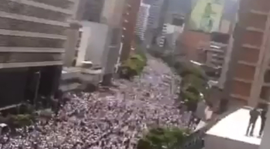 Столица Венесуэлы Каракас парализована демонстрациями в поддержку оппозиционного лидера Хуана Гуаидо, который объявил себя исполняющим обязанности президента. К простетной акции присоединились уже четыре штата из 23 в стране: Баринас, Арагуа, Боливар и Нуэва-Эспарта. Очевидцы сняли многотысячную толпу, которая скандирует лозунги против действующего лидера Венесуэлы Мадуро.