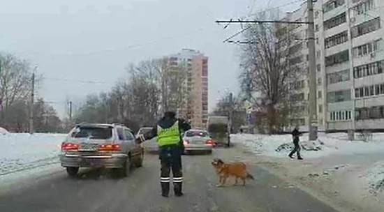 В Челябинске инспектор ДПС остановил движение на одной из улиц города, чтобы хромая бездомная собака могла спокойно перейти через дорогу. Заснявший этот забавный случай водитель выложил запись в Twitter. В видеоролике хорошо видно, что собака ждала на обочине возможности перебежать через улицу, а сотрудник ГИБДД специально вышел из машины, чтобы помочь собаке.