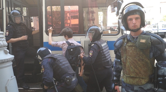 В субботу 27 июля у здания мэрии Москвы планировалась несанкционированная акция оппозиции. ВПолиция начала задерживать участников митинга в полдень. Толпа вытеснялась с Тверской живыми кордонами из силовиков, по разным данным, полицейские задержали несколько сотен человек, которые позже были доставлены в отделение для составления протоколов.