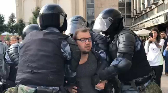 На несанкционированной акции в Москве 3 августа силовики задержали гражданина, который отговаривал пришедших от участия в подобных мероприятиях. "Люди, которые вас сегодня вывели - почему они не согласовали то, что вы нелегально здесь находитесь?!" - возмущенно говорил он. На встречном вопросе "А вы зачем сюда пришли?" правоохранители забрали мужчину и унесли со словами "Разберемся". Задержанный оказался корреспондентом "Царьграда", причем собравшиеся пытались за него вступиться. Этот эпизод мы записали на видео.