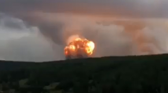 Очевидцы взрывов на складе боеприпасов под Ачинском сняли на видео взрывную волну, похожую на ядерный гриб. Боезапасы продолжают гореть, и население двух поселков Новый Улуй и Каменка спешно эвакуируют на 20 км от места происшествия. По предварительным данным, ранения получили как минимум два человека.