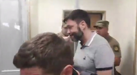 Киевский суд освободил главреда РИА Новости Украина Кирилла Вышинского прямо в зале суда. На видео, снятом Артуром Журбенко, видно, как охрана выпускает журналиста из застекленной клетки. Вышинский провел под арестом более 400 дней, его обвиняли в поддержке непризнанных республик Донбасса и государственной измене. Сейчас мера пресечения была изменена с заключения на личное поручительство.