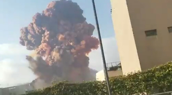В порту ливанского Бейрута на складе пиротехники прогремел мощный взрыв. Грибоподобное облако и столб дыма поднялись на сотню метров, а взрывная волна выбила стекла и двери домов в радиусе нескольких километров. Информации о причинах взрыва пока нет.