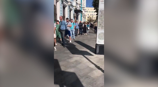 В воскресенье 9 августа в Белоруссии проходят выборы президента. С самого утра у посольства Белоруссии в Москве выстроилась длинная очередь из желающих выразить свою гражданскую позицию. Люди растянулись вдоль здания более чем на километр.