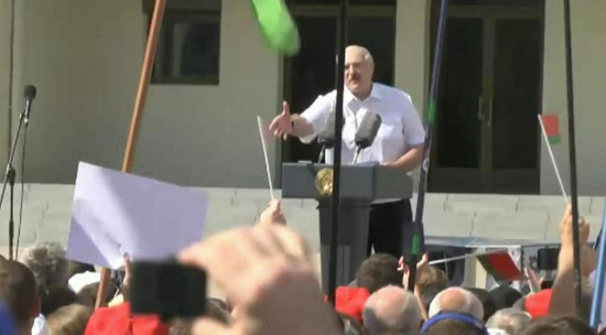 Президент Белоруссии Александр Лукашенко выступил на митинге в свою поддержку у Дома правительства в Минске. Участников свозили туда на автобусах из разных городов. До последнего момента было не понятно, появится ли там Лукашенко, однако он приехал. Облаченный в белую рубашку Батька произнес речь, которая, судя по тому, что он вытирал глаза и лоб, далась ему непросто.