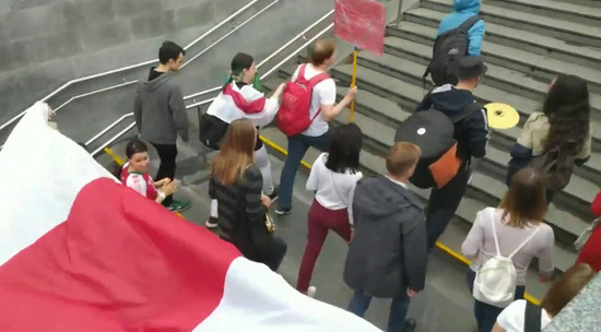 В Минске проходит очередная акция протеста оппозиции, тысячи людей с бело-красными флагами и цветами с разных концов города собрались на площади Независимости. Не поместившиеся на площади демонстранты заняли ближайшие улицы. Видео опубликовано в Telegram-канале Tut.by.