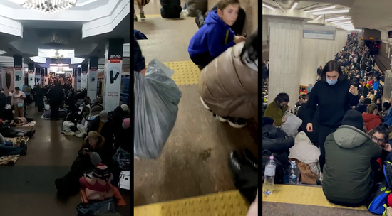 В социальных сетях публикуются многочисленные видео с людьми в подземке. Люди обустраиваются прямо на перронах станций. На бетоне расстелены пледы, кто-то несет мешки с продуктами. Слышны детские голоса. Минувшую ночь люди также провели в метро.