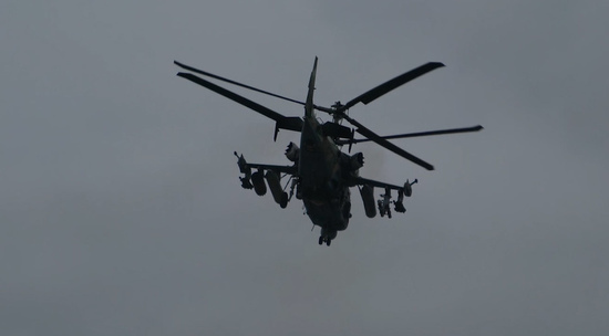 Звено вертолетов Ка-52 выстрелами из противотанковых ракетных комплексов "Вихрь" уничтожило склад вооружений ВСУ. Удар по цели был выполнен с расстояния более семи километров без входа в зону поражения ПВО противника.