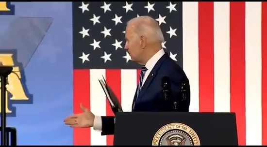 Президент США Джо Байден в очередной раз попал в нелепую ситуацию. После официального выступления в Северной Каролине американский лидер развернулся, протянул руку и завис на несколько секунд. Очевидно, Байден ожидал кого-то увидеть и пожать ему руку, однако не дождался ответной реакции и с растерянным видом побрел по наполненному зрителями залу.
